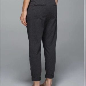 Lululemon Stress Less datk gray pants. Size 4. VGUC. Stretch French terry fabric. Measurements materials and care in pics
