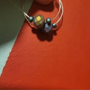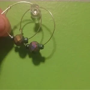 •New Handmade Iridescent Glass Beads On Silver Colored Hoop Earrings