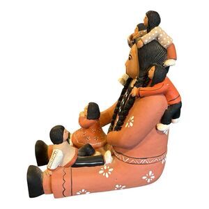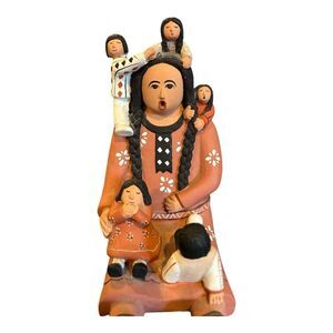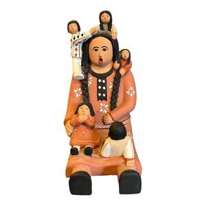 Story Teller Pueblo folk art clay figurine w 5 children 6" tall unsigned, tag