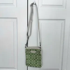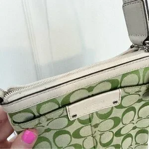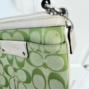 Vintage 90’s Coach Lime Green Signature Monogram Pattern Canvas Crossbody Bag