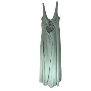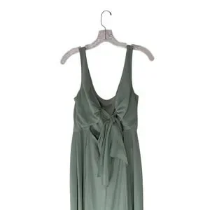 Keywords: DB Studio, bridesmaid dress, formal gown, evening wear, sage green, square neck, sleeveless, maxi, slit, bow back, pockets, wedding guest, special occasion