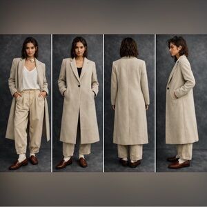 A timeless Free People longline coat with a softly tailored silhouette and effortless drape. Designed for elevated layering, this neutral beige piece blends structure with relaxed ease — equally at home over denim and knits or styled with minimalist separates for a polished, modern look.