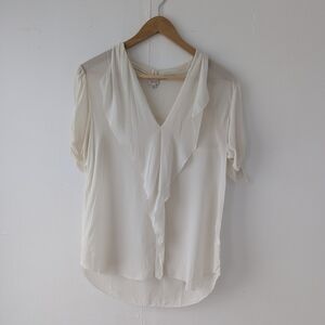 Aritzia Babaton Tinsley 100% Silk Ruffle Blouse - Cream - Size Small