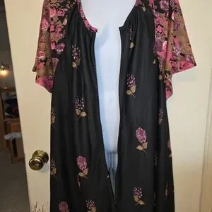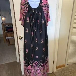 Easy Essentials- Black and Pink- Floral- Maxi- 3/4 Zip- Lounge Dress- 3X