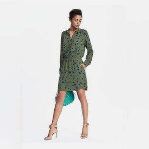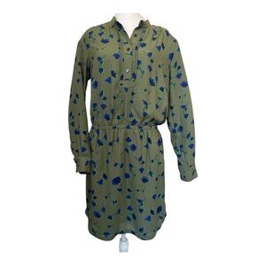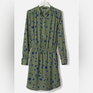 Banana Republic Floral French Shirtdress Lined with Pockets Olive Green Medium