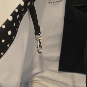 Like new Thirty-One tote. Black with white polka dots. Ideal for daily use. Stylish and functional. Inside zip po ket and key latch. Outside open pocket. The inside lining is vinyl ans wipeable.