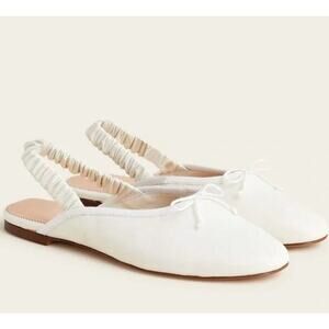 J.Crew Zoe Ballet Scrunchy Slingback Flats Ivory Leather Size 10.5