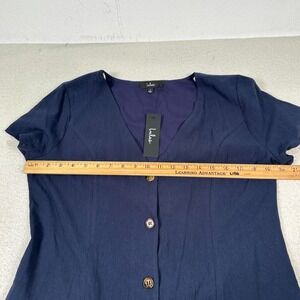 NWT Lulus Everyday Sweetness Mini Dress Large Button Front Pockets Navy Blue