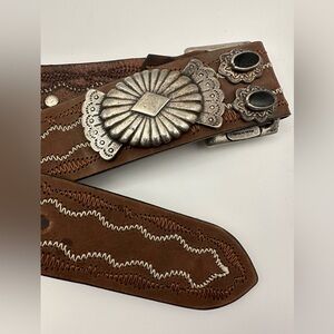 Adoppia Vita Belt 30" Brown Leather Silver Concho Medallion Onyx Western Vtg