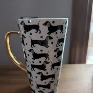 NWOT! Lady Jayne Dachshund 13oz Procelian Travel Mug