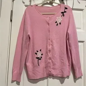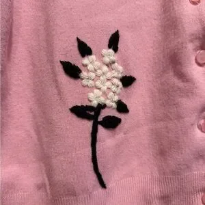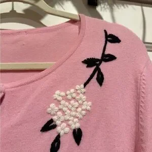 Vintage Pink Floral Embroidered Women's Sweater Unbranded