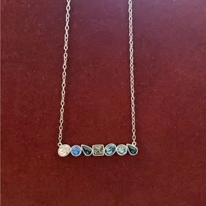Elegant necklace featuring blue and clear stones. Adds sparkle to any outfit. Very pretty & sparkly. Photos don’t do justice.