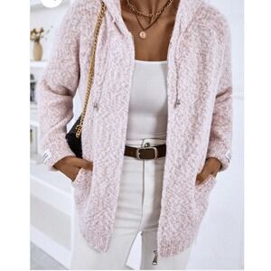 Themdaenss Zip-Up Women's Hooded Cozy Casual Pink Sweater Size L
