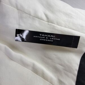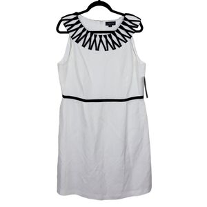 Tahari ASL Dress Size 16 Linen Blend Lattice Neckline Sleeveless Lined White