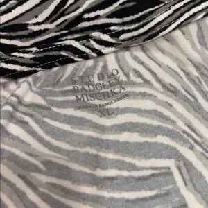 Chic zebra print loungewear by Badgley Mischka. Features a stylish top and matching bottoms. Size XL. Shirt is slightly cropped.
