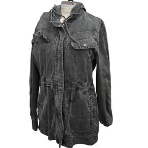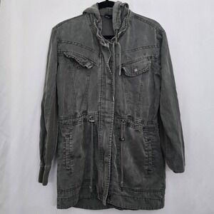 Splendid Utility Jacket XS Gray Lyocell Linen Blend Hooded Cargo Anorak Coat