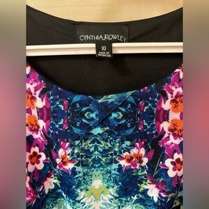 🔴Cynthia Rowley trippy unique floral design midi dress summer size 10