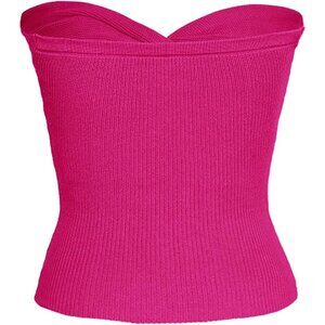 Women's Strapless Crop Top Ribbed Knit Sweetheart Neck Sleeveless Small