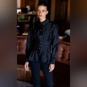 Oliphant Elizabeth Top Hepburn Midnight Black Long Sleeve Blouse SMALL NWT NEW