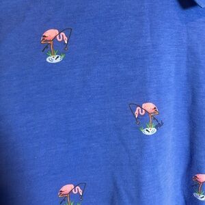 Polo Ralph Lauren Men’s Blue Short Sleeve Polo Shirt Size 2TG/2XB (2X Big & Tall) All-over Pink Flamingo Print ~ Good overall condition.