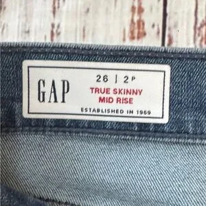 GAP True Skinny Mid Rise Jeans • Size 26/2P • Medium Blue Denim