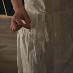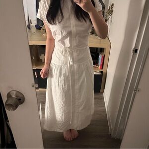 Casual white midi shirt dress. Has white string that adds points to the dress! Never worn, still has tag with the dress #dress #white #midi