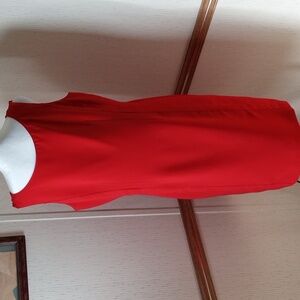 Chic red midi dress by Calvin Klein. Sleeveless design with a sleek silhouette. This is made so you can wear a belt or not. Loops are hidden both front and back. Check out my pictures.
