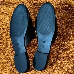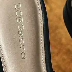 BCBGeneration Black Mules with Gold Buckles