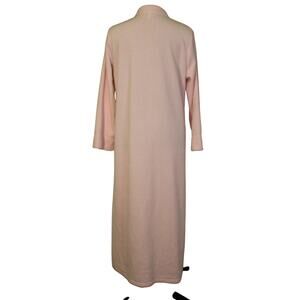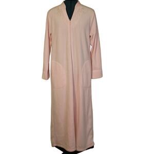 Miss Elaine Pink Zip Front Plush Robe Full Length Embroidered Loungewear S