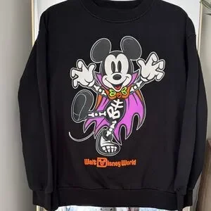 Fun Disney sweater with Mickey Mouse in a vibrant design. Features bold colors and playful graphics. Authentic Disney Parks merchandise. Sells at the park for around $70 USD. Like new condition, no fading or graphic cracking. Features front and back graphic. Women’s size medium, true to size. Perfect for Mickey’s Not So Scary Halloween Party ;)