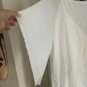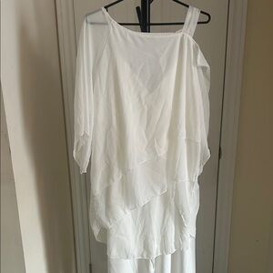 Amazon Elegant White V-Neck Jumpsuit with waterfall sheer quarter blouse over