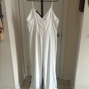 Stylish white jumpsuit with a flattering V-neck. Perfect for any occasion.