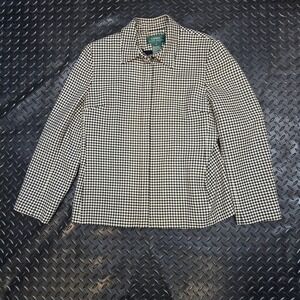 Lauren Ralph Lauren Black Ivory Houndstooth 100% Wool Zip Blazer Jacket Size 16