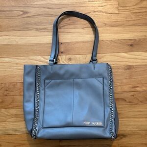 Steve Madden Blue-Gray Tote with Chain Detail
