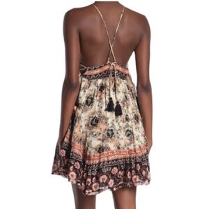 [S]Free People Casablanca White Pink Black Floral Print Tassel Tie Slip Dress