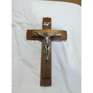 Vintage Jeweled Cross Co. Wood & Pewter Christ the King Crucifix Jesus
