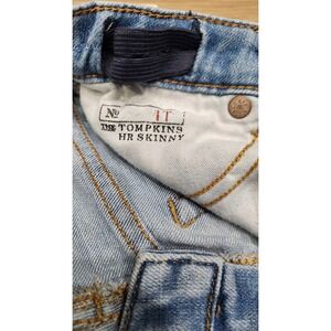 Stylish light blue jeans for kids. Features a classic design with subtle distressing. Perfect for casual wear.