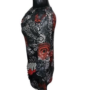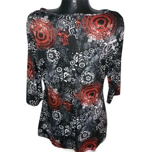 Le Grenier Black and Red Draped Neckline Top With Cropped Sleeves L