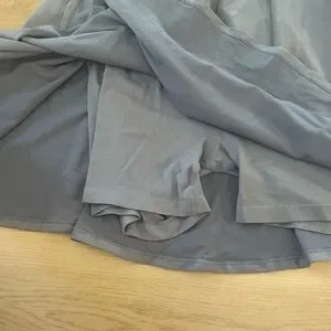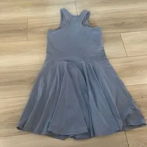 This Harmony and Balance active minidress is designed for movement and style, featuring a seamless construction and a flattering racerback. The built-in shorts provide confidence and comfort, making it perfect for your active lifestyle or casual outings. In a muted blue-grey, this size XL dress offers both performance and a chic aesthetic.