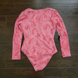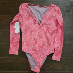 Engineered for active beach or surf days, this bodysuit offers long sleeves and a textured fit for flexibility and comfort. The V-neck design adds style.