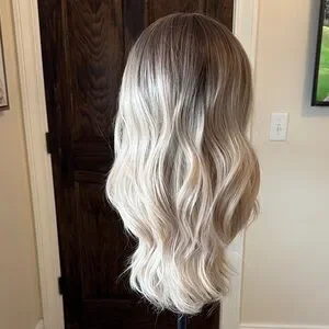 I believe she’s an Angie. Velvet ear tabs. T part. Rooted blonde. Transform your style with this elegant ash blonde ombre wig. Perfect for adding a touch of sophistication to any look.