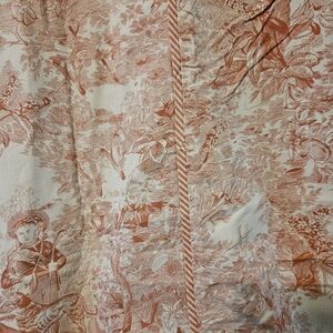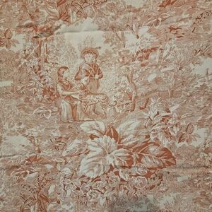 Beautiful red & white toile fabric on front and red & white stripes on back.