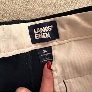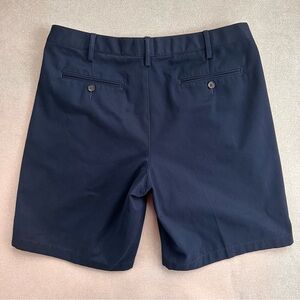 Lands' End Men's Cotton Pleated Front Chino Shorts. Navy Blue. 9 in. inseam. Pre owned. No holes or stains. See photos for approximate measurements.