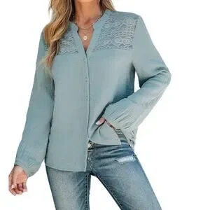 NWT CUPSHE Floral Lace Gauze Button Front Shirt. Lightweight and breathable with sheer lace panels at the shoulders and ballon sleeves.