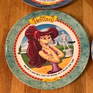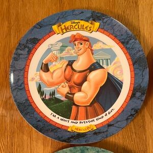 Set of four McDonald's Hercules plates. Features vibrant character designs. Perfect for fans and collectors.