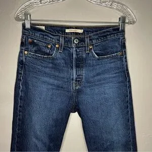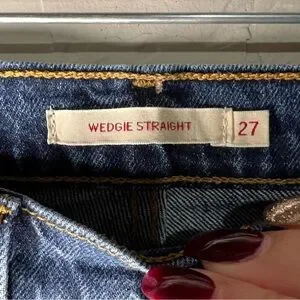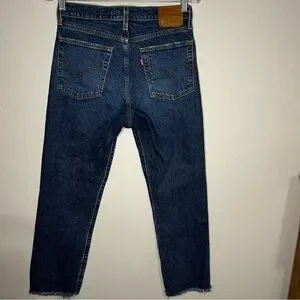 Levi’s Premium Wedgie Straight Button Fly High Rise Raw Hem Crop Denim Jeans