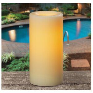 Fusion LED wax pillar candle designed for indoor or outdoor use with a realistic warm flicker glow. A great alternative to traditional candles for patios, entryways, seasonal decor, or everyday ambiance without the worry of melting or open flame.
