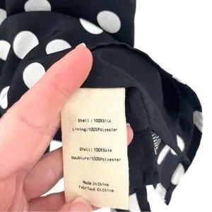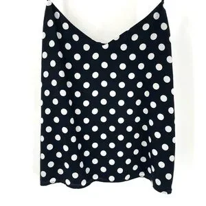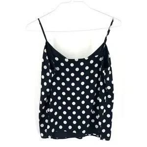 A true black Polkadot camisole with a soft matte finish. The relaxed shape drapes from a soft v-neckline, secured by adjustable spaghetti straps. Constructed using two layers of silk for complete coverage