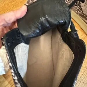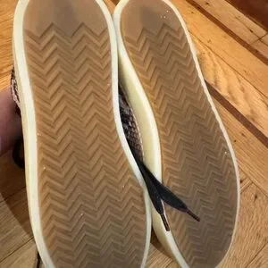 Chic sneakers with a snakeskin pattern. Features black laces and brown accents. Perfect for casual wear.