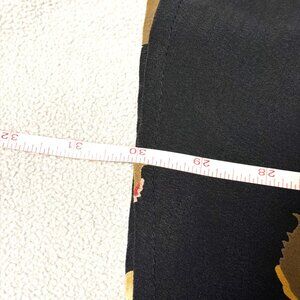 Vtg Sharon Anthony Petite 8 Black Floral Elastic Waist Midi Skirt Made In USA